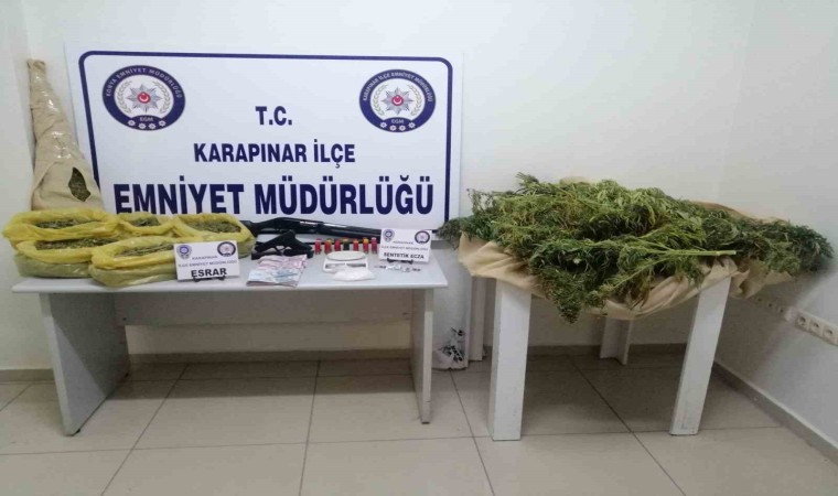 Konya’nın Karapınar ilçesinde polisin düzenlediği operasyonda, uyuşturucu madde ve silah ele geçirildi.