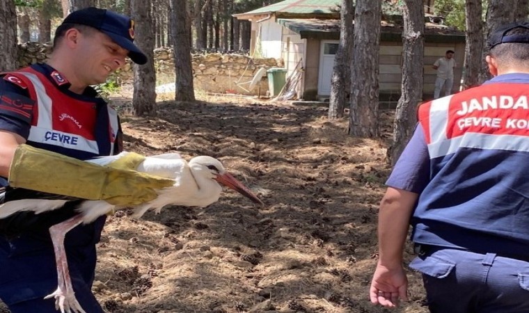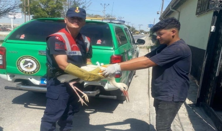 Konya’nın Sarayönü ilçesinde yüksek gerilim hattına çarparak kanadından yaralanan leylek tedavi altına alındı.