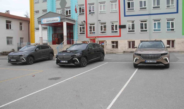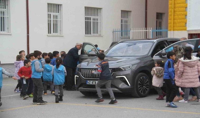 Konya’nın Beyşehir ilçesinde Yerli Malı Haftası kutlamaları çerçevesinde bir ilkokulda düzenlenen etkinliğe Türkiye’nin yerli ve milli otomobili TOGG getirildi.