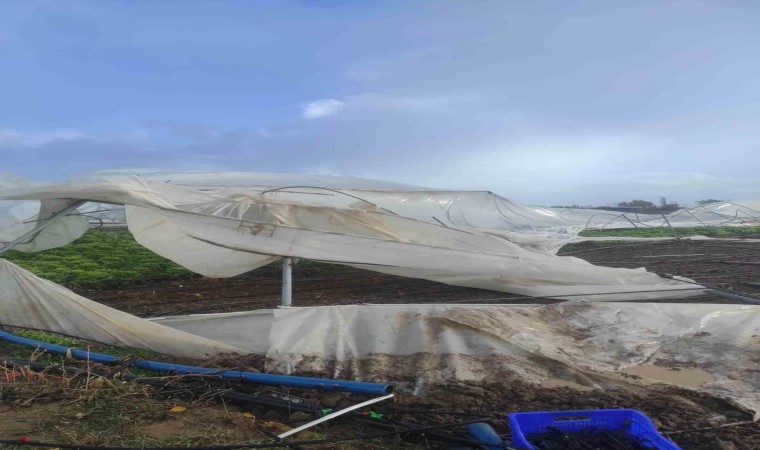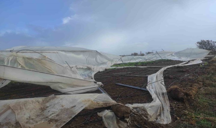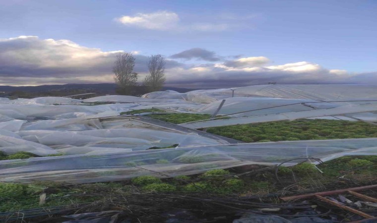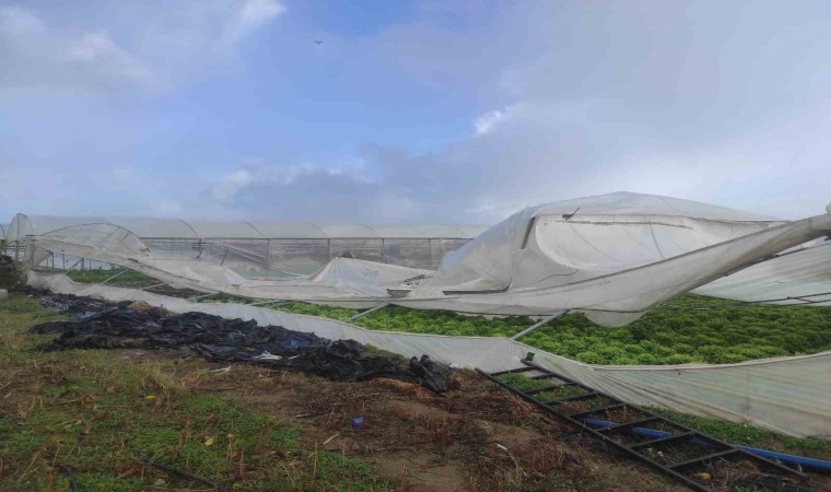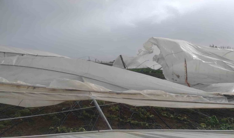 Konya’nın Beyşehir ilçesinde yaşanan şiddetli fırtınadan bazı seralar olumsuz etkilendi.