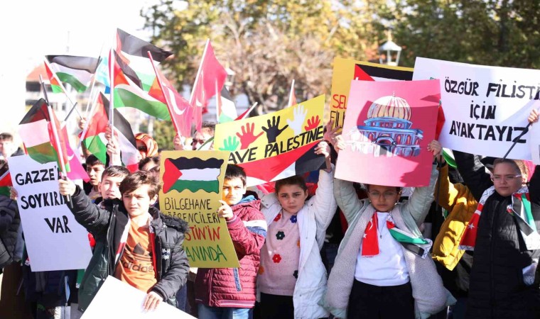 Kılıçarslan Meydanı’nda, Konya Büyükşehir Belediyesi Kudüs Çalışma Grubu ve Bilgehaneler tarafından düzenlenen Kudüs’ün çocukları için Anadolu’nun Çocuklarından" sloganıyla basın açıklaması düzenlendi. Çocukların ellerinde Filistin ve Türkiye bayrakları, İsaril’in saldırılarını kınayan pankartları taşıdı. Konya genelindeki tüm Bilgehanelerden bin 71 çocuğun katılım sağladığı, Kudüs Çalışma Grubu ve Bilgehaneler tarafından hazırlanan programa, aileler de destek verdi. Yapılan açıklamanın ardından çocuklar Gazze’de yaşıtları için gökyüzüne balon bıraktı. Konya Büyükşehir Belediyesi Çocuk Meclisi Başkanı Talut Kerem Cengiz, "Tüm dünyanın gözleri önünde sayısız zulme ve acıya göğüs germeye çalışan, şehit olan, topraklarından sürülüp vatansız bırakılan Gazzeli kardeşlerimize selam göndermek istiyorum. İsrail, neredeyse bir asra yakın bir süredir sistematik olarak Filistin topraklarını işgal ederek yüzbinlerce Filistinliyi kendi vatanlarından ayrılmaya mecbur bıraktı. Bu haksız politika nedeniyle Filistin toprakları onlarca yıldır barıştan ve huzurdan mahrum kaldı. İsrail’in, hiçbir ahlaki ve vicdani ilke gözetmeksizin yürüttüğü bu operasyon, savaş değil, katliam ve soykırımdır" dedi.