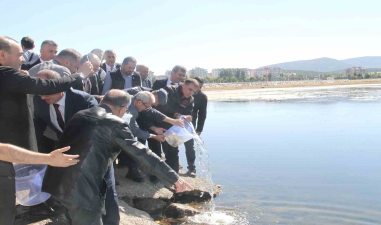 Konuşmalar sonrasında Konya Tarım ve Orman İl Müdürü Duran Seçen ve Belediye Başkanı Adil Bayındır ile beraberindeki protokol üyeleri tarafından kovalar içerisinde bulunan yavru sazan balıkları göl sularıyla buluşturuldu.