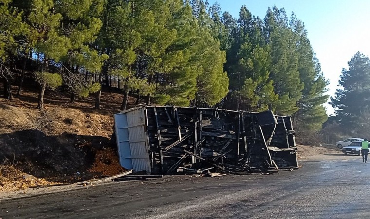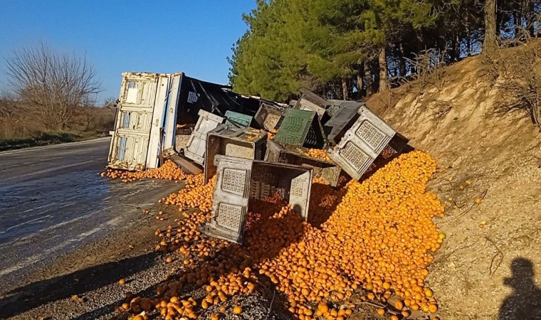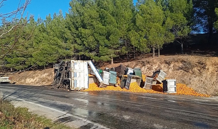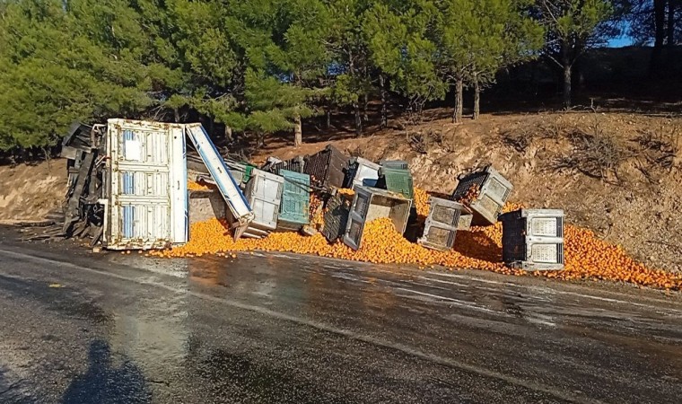Denizli’nin Çal ilçesinde seyir halindeki bir kamyonun dorsesi koptu. Dorsede bulunan tonlarca mandalina yola saçıldı.