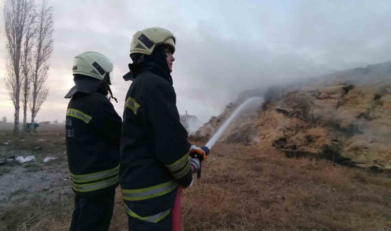 Konya’da boş arazide bulunan saman balyalarının yakınlarında bulunan elektrik telinin kopması sonucu çıkan yangında 20 bin saman balyası yandı.