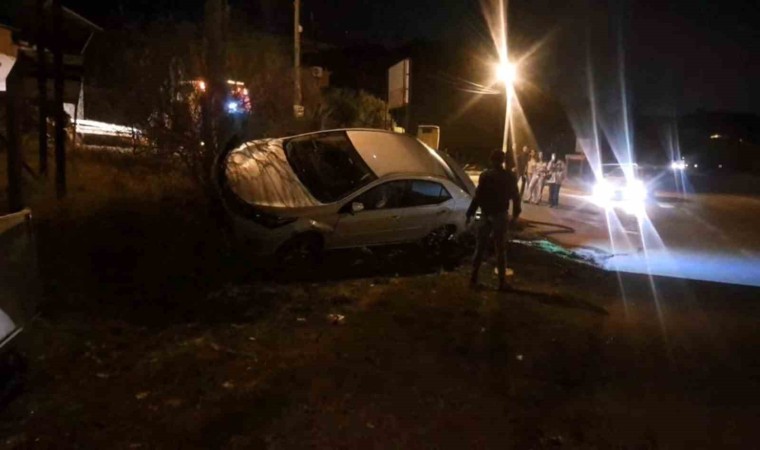 Aydın’ın Söke ilçesinde meydan gelen trafik kazasında otomobil yan yatarken, sürücü kazayı yara almadan atlattı.