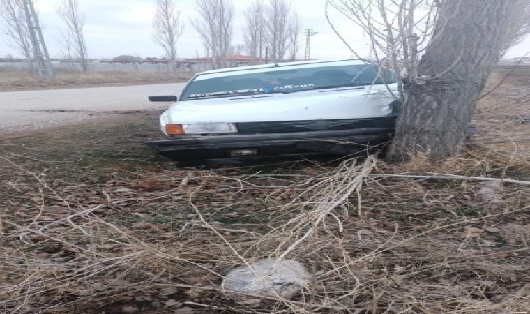Çorum’un Alaca ilçesinde, ilçeden köye seyir halinde olan araç aniden yola çıkan köpeğe çarpmamak için manevra yapınca yol kenarındaki ağaca çarptı.