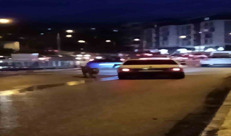 Karabük’te otomobili ile seyir eden sürücünün ipinden tuttuğu köpeği de peşinden sürüklediği anlar cep telefonu kamerası ile kaydedildi.