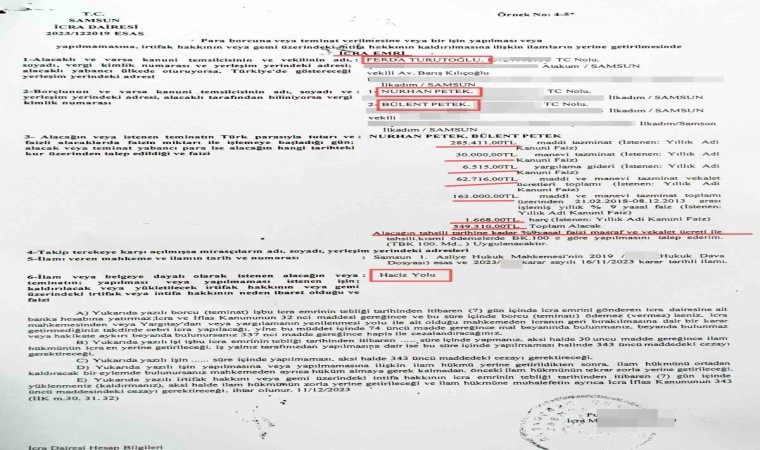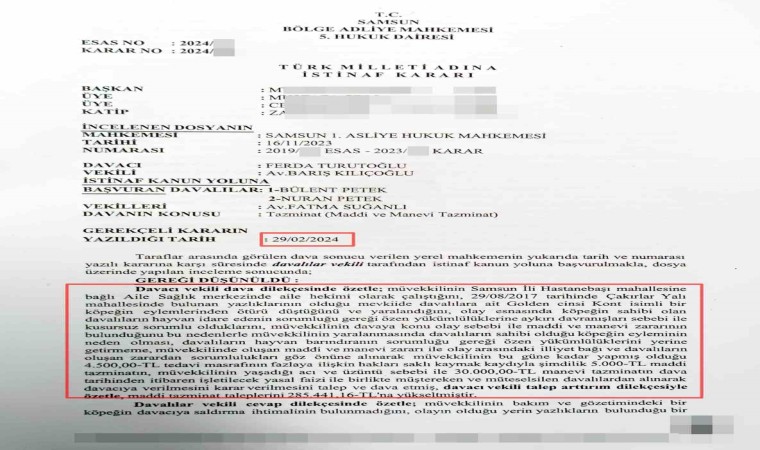 Samsun 1. Asliye Hukuk Mahkemesi, Dr. Ferda Turutoğlu’nun açtığı maddi ve manevi tazminat davasında lehine karar verdi. Mahkeme davacıyı haklı bularak Petek çiftini 285 bin 441 TL maddi tazminat, 30 bin TL manevi tazminat, 21 bin TL karar-ilam harcı gideri, bin 668 TL harç yargılama gideri, 6 bin 515 TL yargılama gideri, 44 bin 816 TL vekalet ücreti ve 17 bin 900 TL vekalet ücretinin yasal faizleri ile birlikte toplam 465 bin 976 TL para cezasına çarptırdı.