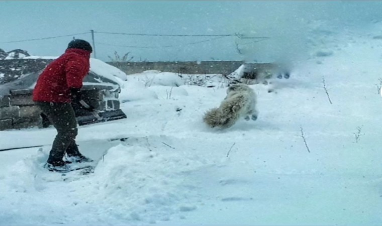 Bitlis’in Adilcevaz ilçesinde, görüntü çeken dronun sesine tepki gösteren köpeğin hareketleri güldürdü.