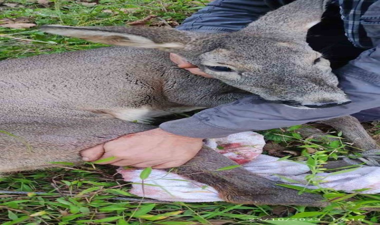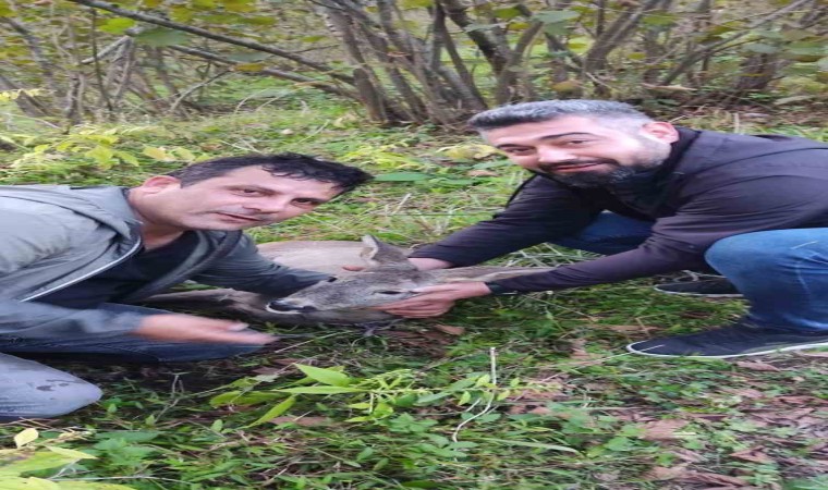 Giresun’un Eynesil ilçesi Adaköyü köyünde yol yapım çalışmaları yürüten Giresun İl Özel İdaresi personelleri, yaban köpeklerinin peşine düştüğü ve yaraladığı bir karacayı kurtardı.