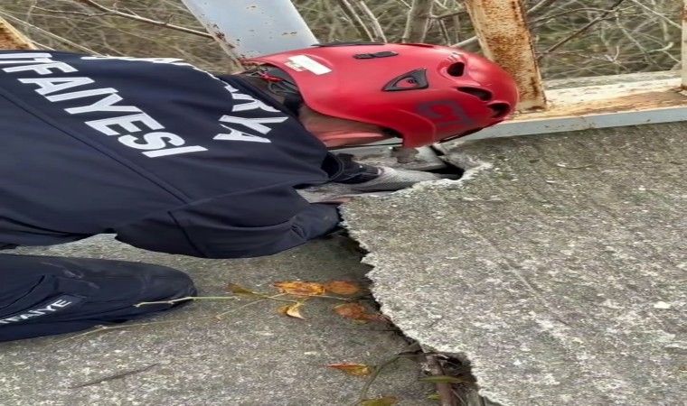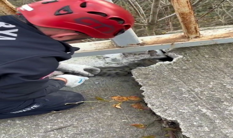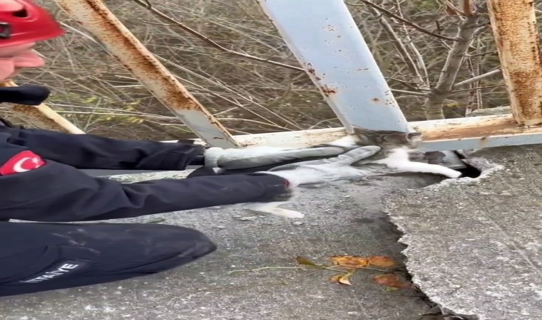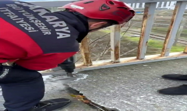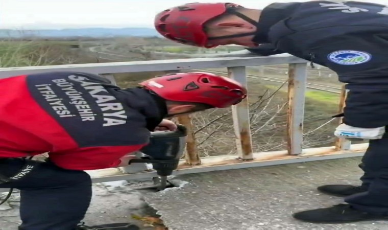 Sakarya’da köprü korkuluğunun altına sıkışan yavru kedi, itfaiye ekiplerinin müdahalesi ile kurtarıldı.