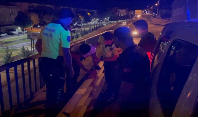 Aksaray’da alkol aldıktan sonra köprülü üst geçide çıkıp intihara kalkışan şahsı, devriye gezen polis ekipleri ikna ederek kurtardı.