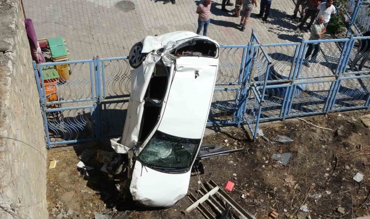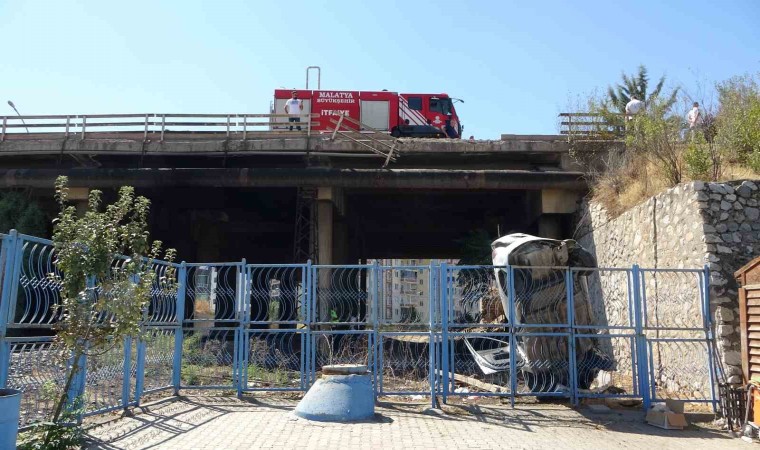 Malatya’da, sürücüsünün kontrolünden çıkan otomobil köprü korkuluklarını kırarak aşağı uçtu. İki kişinin yaralandığı kazada araç dik şekilde asılı kaldı.