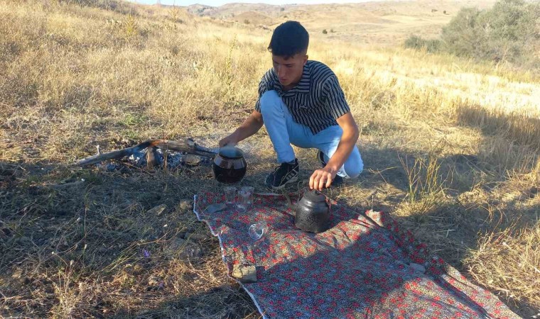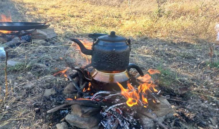 Arkadaşıyla kara demlik çayı içmek doğaya çıktığını dile getiren Emirhan Yılgın da, “Sıcak havada vatandaşlar soğuk bir şeyler içse de biz kara demlikte yapılan çayı tercih ediyoruz. Evde tüpte yapılan çay kara demlik çayının yerini tutmuyor, biz de gelip doğada kara demlik çayı içiyoruz” ifadelerine yer verdi.