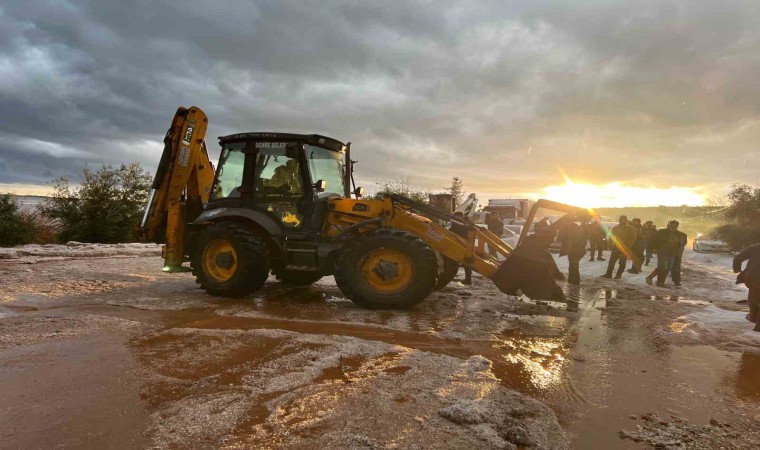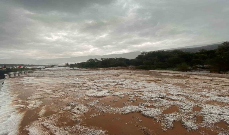 Antalya’nın Demre ilçesinde etkili olan dolu seralara zarar verdi, şiddetli yağış sele neden oldu. Dolu ve sel nedeniyle yollar ulaşıma kapanırken, denize akan çamur nedeniyle Demre sahilleri kızıla boyandı.