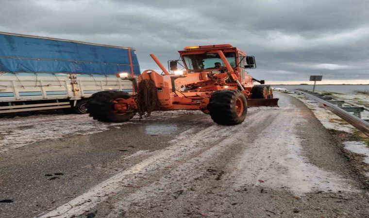 Beymelek Mahallesi İskele mevkiinde dolu ve şiddetli yağış nedeniyle D-400 karayolu, saat 17.00 civarında yolda oluşan birikintiler nedeniyle 4 noktadan tedbir amaçlı trafiğe kapatıldı. Çok sayıda araç yolda kalırken, Antalya Büyükşehir Belediyesi’ne ait iş makinelerinin desteği ile yaklaşık 1.5 saatlik çalışmanın ardından karayolunda trafik tek şeritten kontrollü olarak sağlanmaya başladı.
