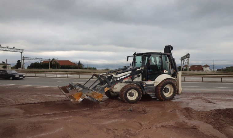 Körfez’de yoğun yağış sonrası çamurla kaplanan cadde ve sokaklar ekipler tarafından yıkanarak temizlendi.