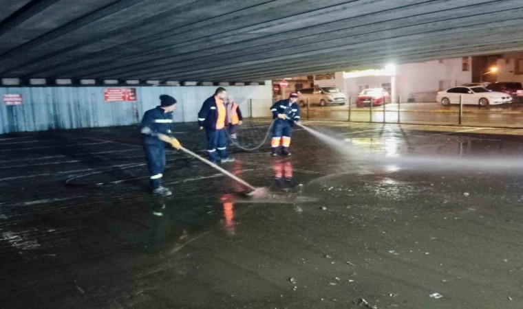 Körfez’de sabah mesaiye başlayan ve gece saatlerine kadar çalışan belediye ekipleri, işlek cadde ve yaşam alanlarında belirli aralıklarla yıkama çalışması gerçekleştiriyor.