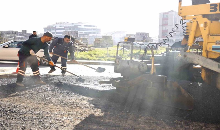 Körfez’de 3 mahalleden gelen trafik akışının birleştiği noktadaki yükü azaltmak için yapılan kamulaştırmalar ve yıkımlar ile açılan yolda asfalt serim çalışması gerçekleştirildi.