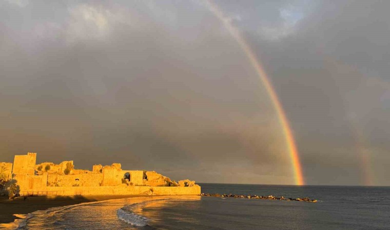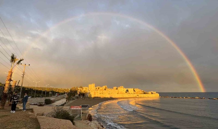 Mersin’deki Korikos Antik Kenti içerisindeki dışkale ve karakale olarak da bilinen Korikos Kalesi üzerinde oluşan gökkuşağı eşsiz bir manzara oluşturdu.