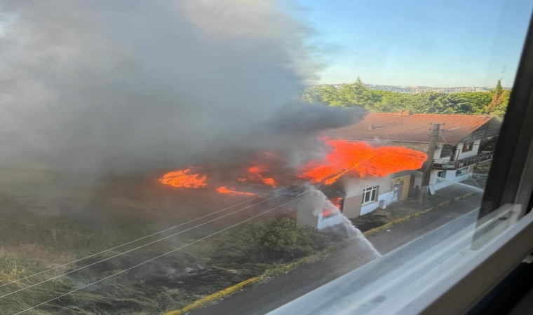 Kocaeli’nin Gölcük ilçesinde çıkan yangında tek katlı ev alev topuna döndü. Alevler tüm evi sararken, itfaiye ekipleri yangını söndürdü.