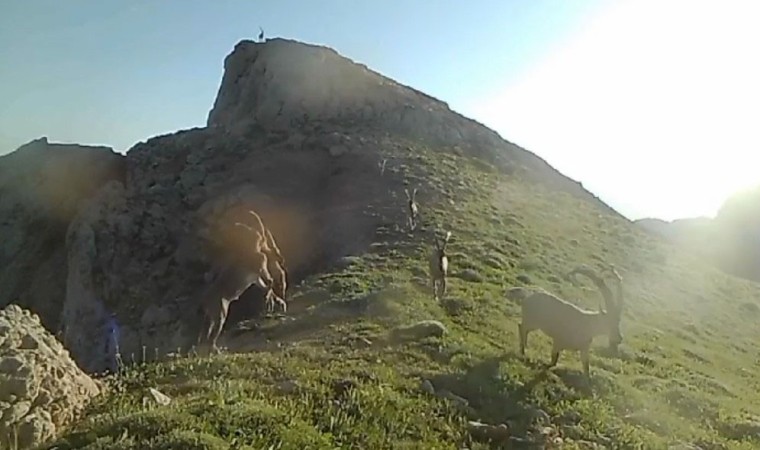 Tunceli’de koruma altında bulunan yaban keçileri, sürü halinde fotokapana takıldı.