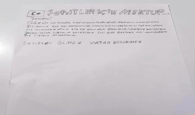 Aile ve Sosyal Hizmetler Bakanlığı'na bağlı evlerde kalan çocuklar, yazdıkları mektuplarla vatan savunmasında görevli Mehmetçik'in yeni yılını kutladı. Son dönemde Irak'ın kuzeyindeki terör saldırıları sonucu şehit olan askerler için de başsağlığı mesajlarını ileten çocuklardan biri mektubunda, "Şehitlerimiz olmasaydı, sizler olmasaydınız bu vatan, bu millet şu an olmazdı" dedi.