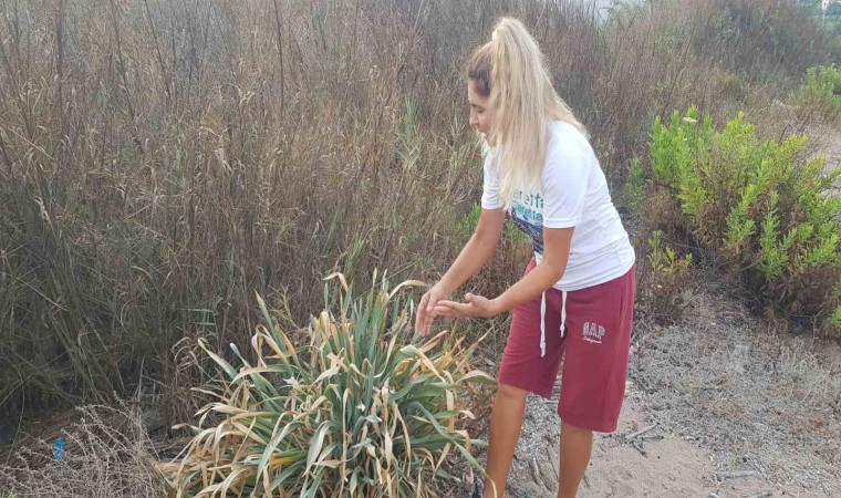 "Açtıkları zaman çiçekler kızgın kumların altına adeta gelin gibi oluyorlar. Gördüğünüz gibi dün burada 3 çiçek vardı bugün hepsi kurumuş. Bir günde aşırı sıcaklardan dolayı kuruyorlar. Bunun sonucu çiçekler tohuma dönüşemiyor. Bu yıl erken kurudu kum zambakları. Çiçek açtıkları zaman muhteşem oluyorlar ve sahile müthiş güzel bir koku yayılıyor. Yere düşen tohumlar ise yine sıcaklardan dolayı zarar görüyor. Tohumlar hafif nemli olmalıydı ancak baktığımız zaman tamamen içinin kuru olduğunu görüyoruz. En kısa sürede buradaki kum zambakları resmi kayıt altına alınarak kurumalarının engellenmesi için gerekli önlemlerin alınması gerekiyor. Bu konuda resmi kurumları defalarca yardıma çağırdım, çağırmaya da devam edeceğim."