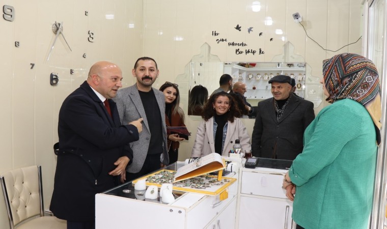 Oltu Taşı El Sanatları İş Merkezini ziyaret eden Oltu Büyük Birlik Belediye Başkan adayı Nazım Koşar ve Belediye Meclis üyeleri, Dernek Başkanı Ertuğrul Erkin Asan’dan bilgiler aldılar.