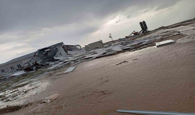 Gümüşhane’nin Köse ilçesinde etkili olan sağanak dereleri taşırdı, köprüler sular altında kaldı. Fırtına nedeniyle şantiye alanındaki binaların çatıları yıkıldı.
