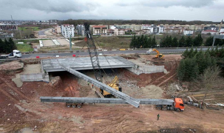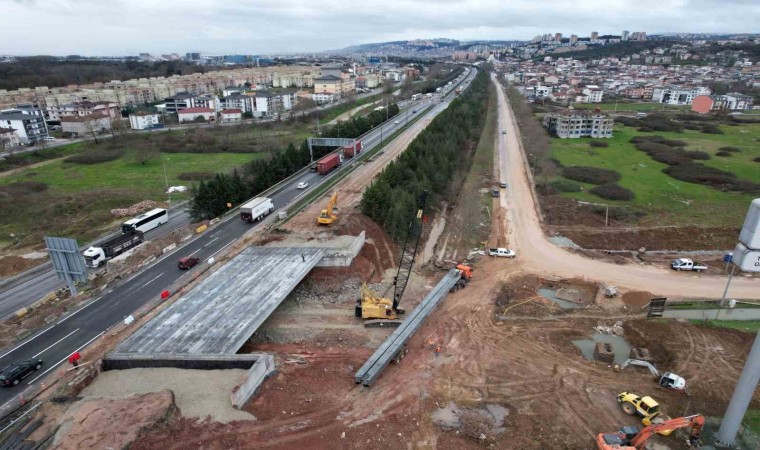 Köseköy Alikahya Stadyum bağlantı yolu kapsamında TEM Otoyolu üzerindeki menfez yıkıldıktan sonra yeni köprünün kiriş montajına başlandı.