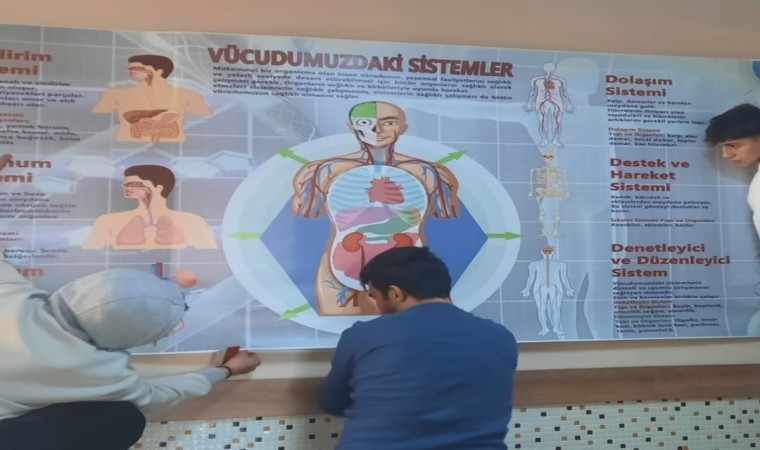 Köşk Mesleki ve Teknik Anadolu Lisesi Okul Müdür Yardımcısı Alev Aydın ve öğretmen Halis Özmen’in gözetiminde okul öğrencileri ’Meslek Lisesi Hayata Dokunuyor’ sloganıyla Köşk Beyköy Polis Abla Ortaokulu duvarlarını bilgi afiş ve resimleriyle donattı.