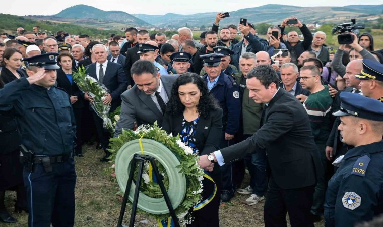 Kosova’nın kuzeyinde silahlı Sırp grup ile polis arasında yaşanan çatışmalarda Kosovalı polis memuru Afrim Bunjaku hayatını kaybetmişti. Bunjaku için dün devlet töreni düzenlendi. Kosova’nın kuzeyindeki Vıçıtırın Belediyesi’ne bağlı Samadrexhe köyünde düzenlenen cenaze törenine Kosova Cumhurbaşkanı Vjosa Osmani, Meclis Başkanı Glauk Konjufca, Başbakan Albin Kurti, Dışişleri Bakanı Donika Gervalla, İçişleri Bakanı Xhelal Sveçla, ABD Büyükelçisi Jeffrey Hovenier ve Emniyet Müdürü Gazmend Hoxha katıldı. Kosova Cumhurbaşkanı Osmani tarafından milli kahraman ilan edilen Bunjaku’nun cenaze namazı Kosova İslam Birliği Başkanı Nami Trnava tarafından kıldırıldı.