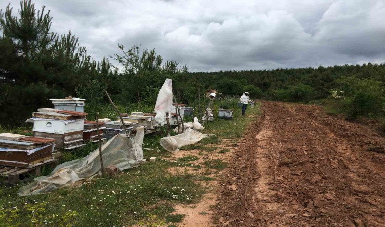 Arıcılık yaptığı bölgedeki yolun da iş makinelerince bozulduğunu ifade eden Ergin, aracı giremediği için kalan kovanlarını götüremediğini söyledi.