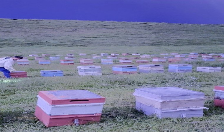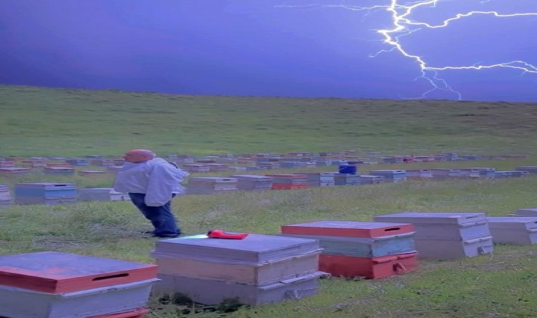 Bitlis’in Ahlat ilçesinde çakan şimşekler geceyi gündüze çevirirken, kovanlarını yaylaya taşıyan arıcılar ise şimşekler arasında kaldı.