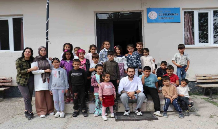 Okul bahçesinde çocuklarla futbol oynayan Karaca, onlarla fotoğraf çektikten sonra köyden ayrıldı.