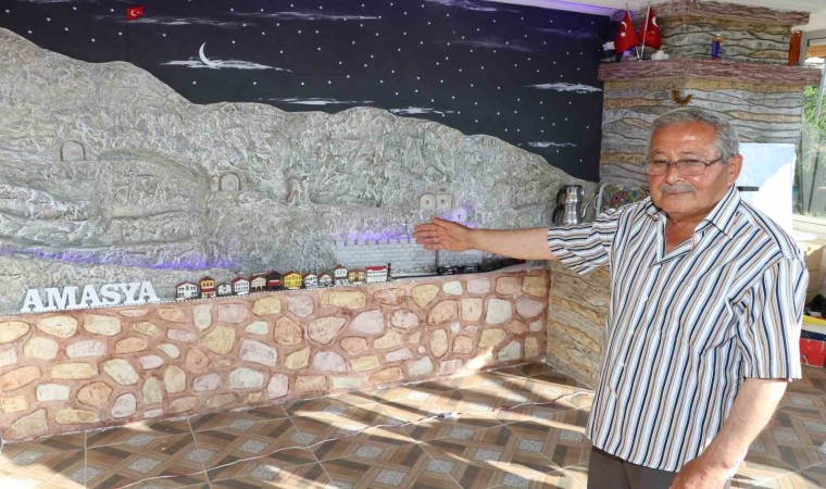 Amasya’nın Taşova ilçesine bağlı Şahinler köyünün muhtarının Cemal Karagişi, evinin duvarına çok sevdiği memleketi Amasya’nın siluetini yaptırdı.
