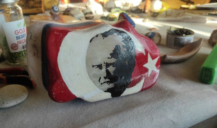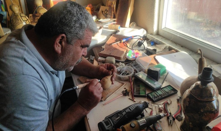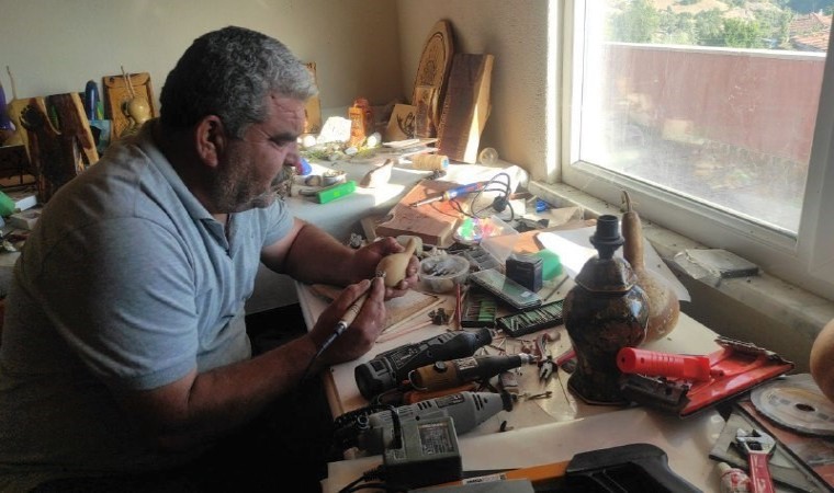 Yozgat’ta kendi imkanlarıyla süsleme sanatını öğrenen köy muhtarı Rıza Taşkın, doğadan topladığı taş, odun ve su kabağını resim ve çeşitli figürlerle süsleyerek sanat eserine dönüştürüyor.