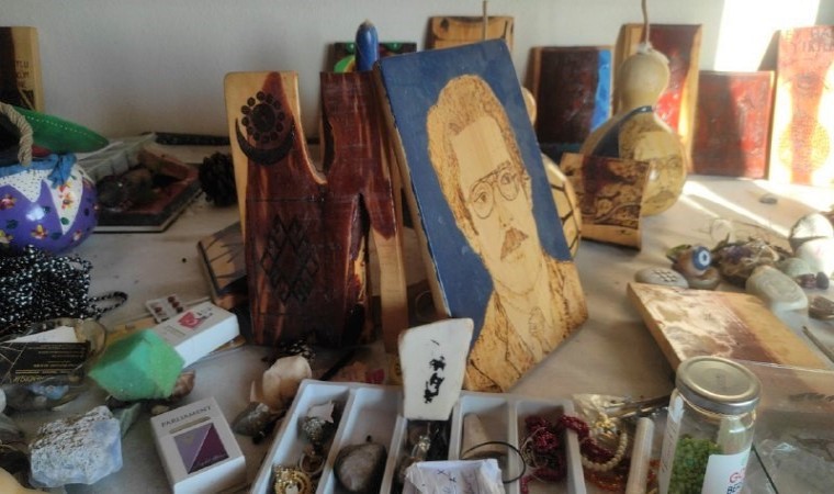 Yozgat’ın Çekerek ilçesine bağlı Kamışçık köyünde yaşayan muhtar Rıza Taşkın, muhtarlık işlerinden arta kalan zamanının bir kısmını evine kurduğu atölyesinde taş, odun ve su kabağı işleyerek geçiriyor. Doğan topladığı malzemeleri işleyerek üzerine yakma ve oyma sanatıyla resim ve çeşitli figürler çizen Taşkın, gece lambası, abajur, vazo, kolye, tamga gibi dekoratif objeler haline getiriyor. Taşkın sabırla hazırladığı eserleri, ilgililerin beğenisine sunuyor.