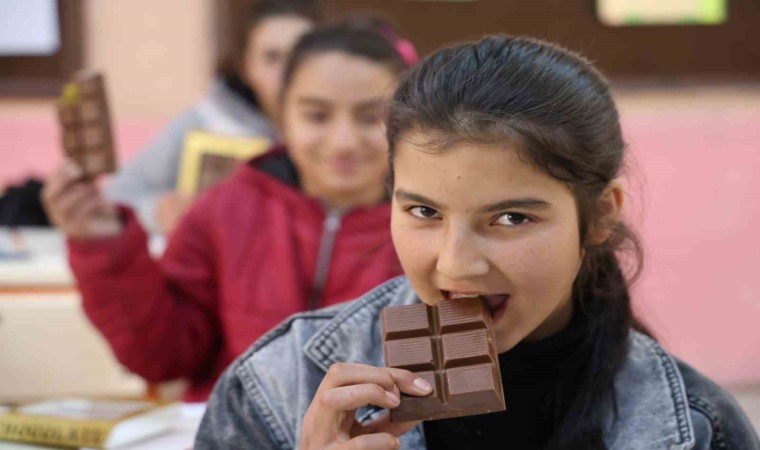 Eda Nur Birol adlı öğrenci, "Çikolata sosyal medyada viral olduğu kadar varmış. Tadını çok merak ediyordum, tadı güzelmiş. Burada her şeye ulaşma şansımız yok, biz de çok merak ediyorduk. Çok teşekkür ediyoruz herkese” diye konuştu.