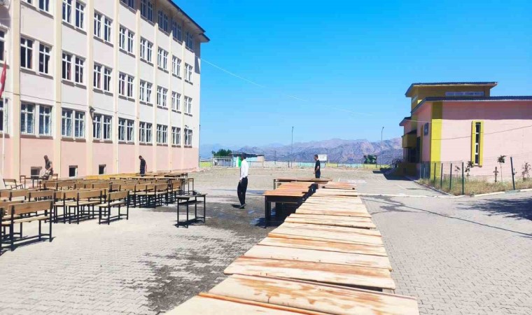 Batman’ın Sason ilçesinde köy okulunda görev yapan idareci ve öğretmenler, yaz tatilinde okulda kalarak okulun boyasını ve tamiratını yaparak yeni eğitim yılına hazırlıyor.