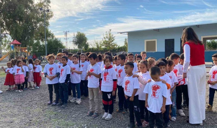 Merkez Yüreğir ilçesine bağlı Pekmezhöyüğü İlkokulu’ndaki çocuklar, Adana’da faaliyet gösteren Ogün Abi Derneği ile birlikte ortak düzenlenen etkinlikte bir araya geldi. Ogün Abi Derneği Başkanı Ogün Sever Okur, yaklaşık 100 çocuk için üzerinde Atatürk portesinin yer aldığı tişört aldı. Dağıtılan tişörtleri giyen çocuklar, okulun bahçesinde velilere ve öğretmenlerine 29 Ekim Cumhuriyet Bayramı gösterisi sundu.