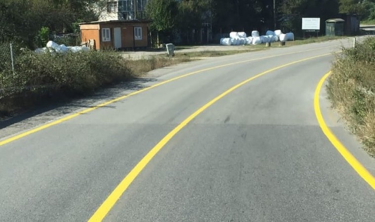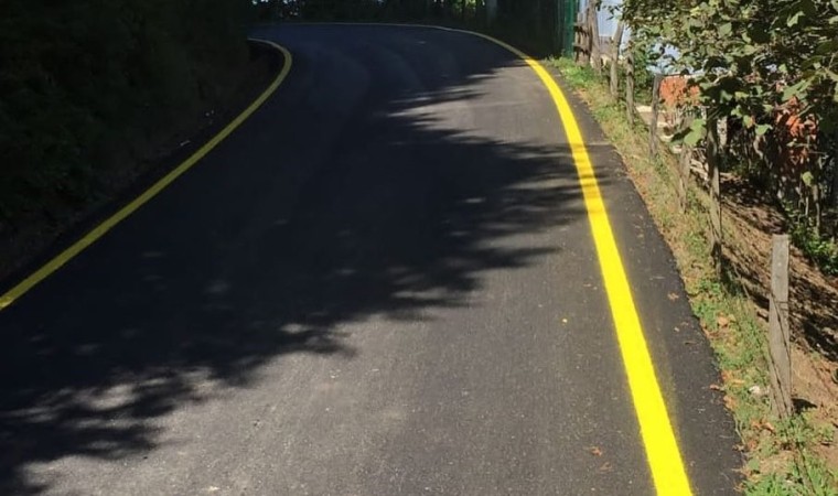 Düzce’de köy yollarında yapılan asfalt çalışmalarının ardından yol çizgi çalışmalarına başlandı.