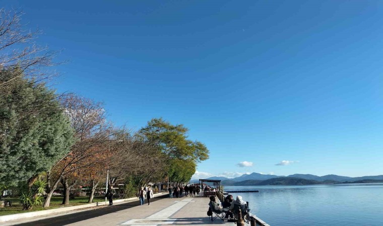 Köyceğiz ilçesinde dün yağan yağmurun ardından kent genelinde güneşli bir hava hakim oldu. Hafta sonu olması nedeniyle güneşi gören vatandaşlar Atatürk Kordonu’na akın etti. Hava sıcaklığının 20-22 derece seyrettiği Köyceğiz’de Sandras Dağı’nda kar keyfi yapılırken göl kenarında bahar havası yaşanması vatandaşlara aynı günde farklı mevsimleri yaşama fırsatı sundu. Ilık havanın etkisiyle Atatürk Kordonu’na gelen vatandaşların bir kısmı yürüyüş yaparken, bir kısmı piknik alanlarını doldurdu. Göle oltasını atıp bekleyenlerin de oldukça fazla olduğu ilçede göl kenarındaki işletmelerde ise kalabalıktan payını aldı.