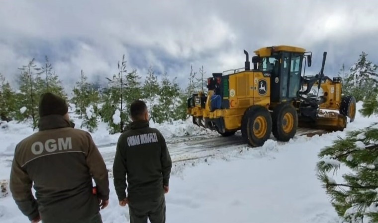 Muğla’nın Köyceğiz ilçesinde karla kaplanan yollar ekipler tarafından açıldı.