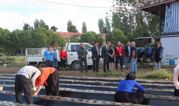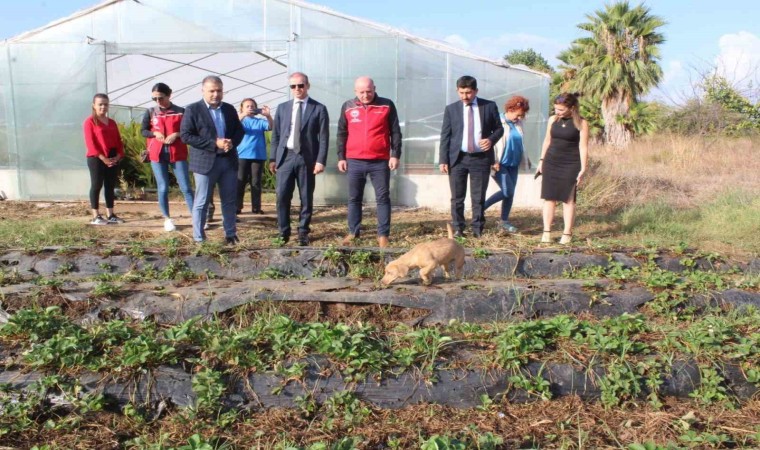 Köyceğiz Şehit Seyhan Yılmaz Mesleki ve Teknik Anadolu Lisesi’nde Milli Eğitim Bakanlığı ve Tarım ve Orman Bakanlığı iş birliğinde öğrenci ve öğretmenlerin tarımsal yeterliliklerinin arttırılması, tarım ve gıda sektöründe ihtiyaç duyulan nitelikli insan gücünün yetiştirilmesi için mesleki ve teknik eğitim faaliyetleri gerçekleştiriliyor. Milli Eğitim Bakanlığı ile Tarım ve Orman Bakanlığı arasında 1 Haziran 2022 tarihinde imzalanan ’Tarım Alanı Bulunan Mesleki ve Teknik Anadolu Liseleri Ortak Yönetim Modeli Protokolü’ ile meslek liseleri tarım alanında desteklenip, güçlendiriliyor. Protokol çerçevesinde, Muğla Tarım ve Orman İl Müdürlüğü tarafından Köyceğiz Şehit Seyhan Yılmaz Mesleki ve Teknik Anadolu Lisesine 15 bin çilek hibe edildi. Çilek üretimi için ayrılan 4 dönümlük açık tarım arazisinde teknik alt yapı çalışmalarının ardından fideler toprakla buluşturuldu. Çileklerin günlük takibi, mahsulün hastalıklardan korunması, gübreleme çalışmaları, alan öğretmenlerinin gözetimi ve denetiminde öğrenciler tarafından yapılıyor. Köyceğiz Şehit Seyhan Yılmaz Mesleki ve Teknik Anadolu Lisesi Tarım Bölümü öğrencileri tarafından okula ait 6 dekarlık alanda tarımsal faaliyet yürütülüyor. Muğla Tarım ve Orman Müdürlüğü tarafından uygulamalı olarak verilen eğitimde 15 bin çilek, 4 bine yakın adaçayı ve Bin 800 kekik fidesi öğrenciler tarafından toprakla buluşturuldu. Çalışmaların her aşamasında Tarım ve Orman İl Müdürlüğü teknik elemanlarının desteğiyle öğrenciler hem öğrendi, hem de üretime geçti. Köyceğiz Kaymakamı Mustafa Maslak Şehit Seyhan Yılmaz MTAL’nin tarım alanlarını yerinde inceledi. Köyceğiz İlçe Milli Eğitim Müdürü Kerem Karahan ve Köyceğiz Tarım ve Orman İlçe Müdürü Eşref Arslan’ın eşlik ettiği ziyarette, yapılan çalışmalar hakkında detaylı bilgi aldı.