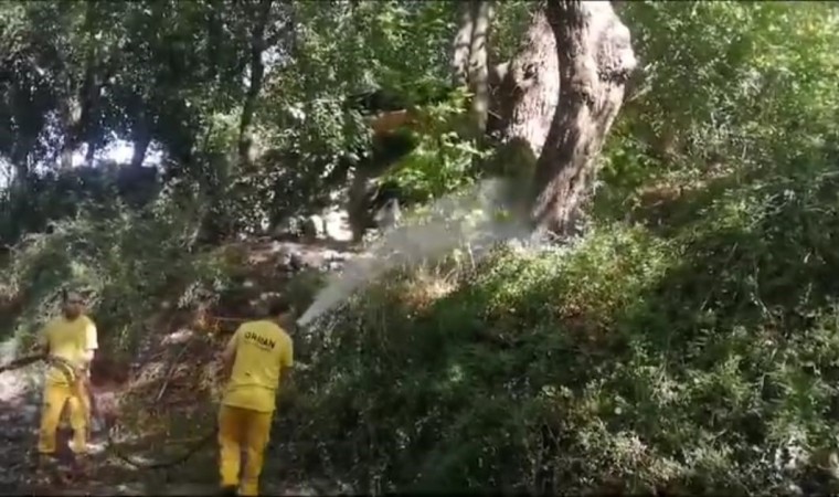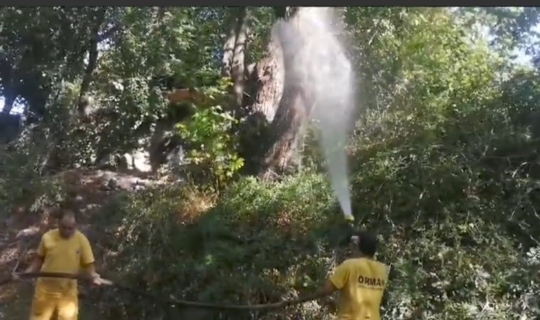 Muğla’nın Köyceğiz ilçesinde Turunçgil zararlısı uzun antenli böcek ile mücadele kapsamında Yuvarlakçay kenarında bulunan ve böceklerin konakladığı çınar ağaçlarına biyolojik preparat uygulandı.