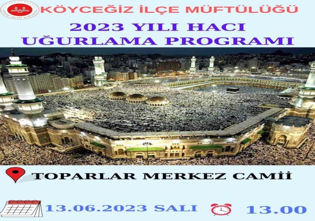 Muğla'nın Köyceğiz ilçesinde, Diyanet İşleri Başkanlığı'na hacca gitmek için başvuran ve bu yılki kura sonuçlarına göre hacca gitmeye hak kazanan hacı adayları için bir uğurlama töreni düzenlenecektir. İslam'ın beş şartından biri olan hac ibadetini yerine getirmek üzere Köyceğiz'den kutsal topraklara gitmeye hazırlanan hacı adayları için düzenlenecek olan uğurlama programı, Köyceğiz Müftülüğü tarafından organize edilecektir. Uğurlama töreni, 13 Haziran 2023 Salı günü Köyceğiz Toparlar Merkez Camii'nde saat 13.00'te gerçekleşecek. Köyceğiz Müftülüğü, bu özel etkinliğe tüm halkı davet etmektedir.