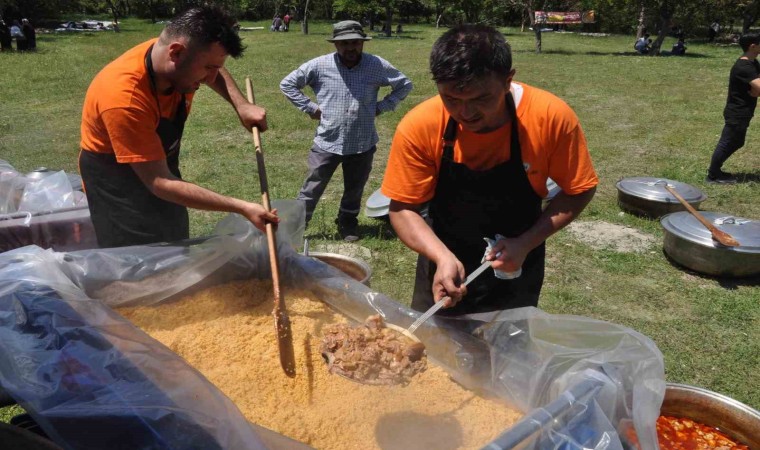 Mehmet Çamlıca, yemeklerin 15 kişilik aşçı ekibi tarafından yapıldığını belirterek, "600 kilogram bulgur pilavı, 400 kilogram kuşbaşı et dağıtıldı. Bölgedeki ilk bayram bizim köyümüzde oldu. İnşallah gelecek nesiller de bu geleneği devam ettirir" diye konuştu.
