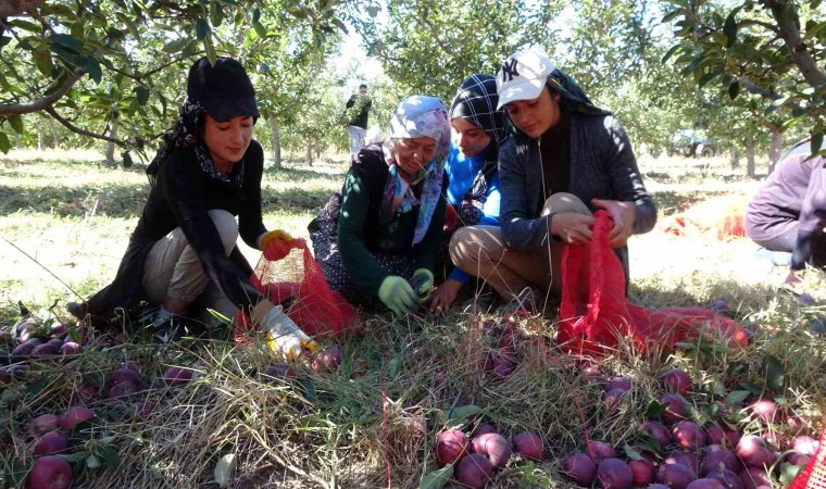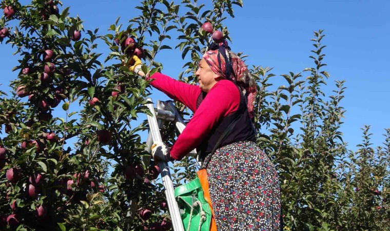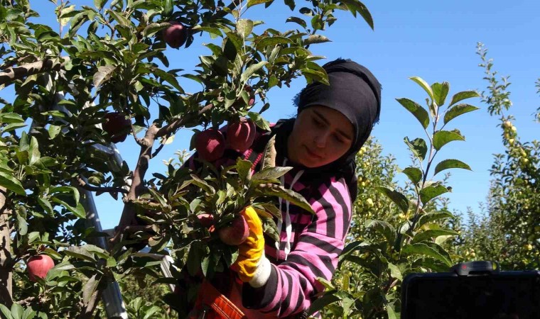 Kiraz ve şeftali hasatlarının ardından köy halkı şimdi de elma hasadı yaparak, ev ekonomilerine katkı sağlamaya devam ediyor.